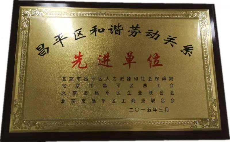 北京市昌平区人力资源和社会保障局、北京市昌平区总工会、北京市昌平区企业联合会、北京市昌平区工商业联合会评为“先进单位”;
